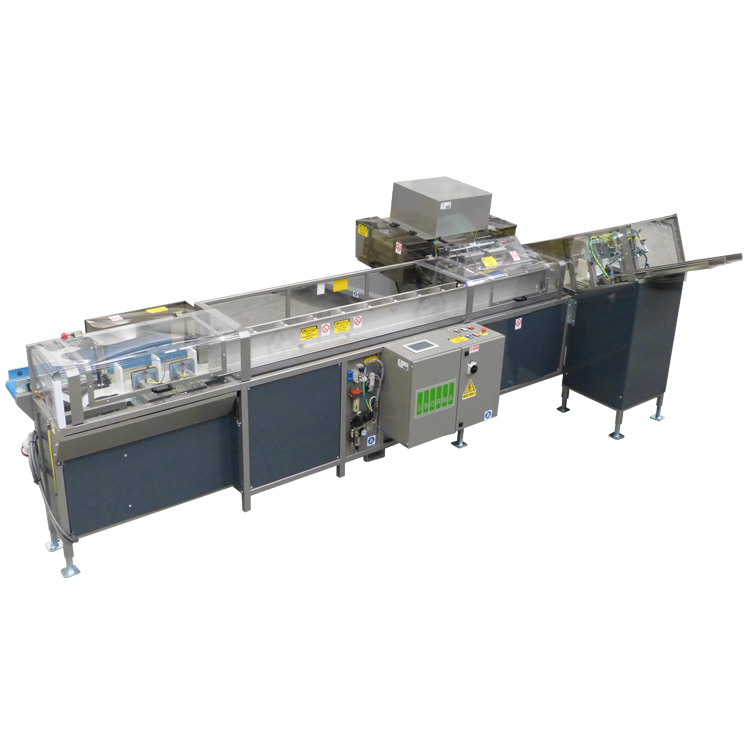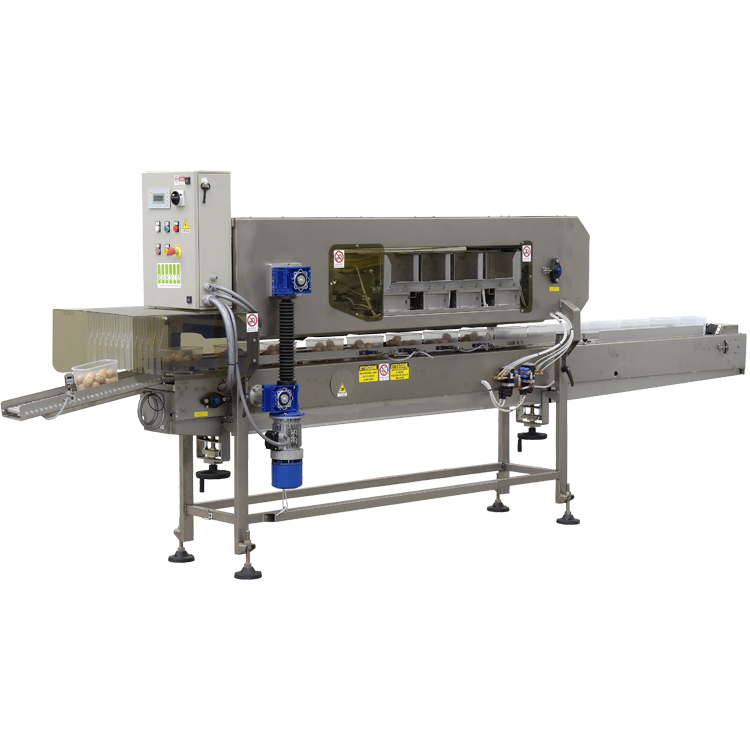 A máquina RP2-115 é adequada para encher covetes de 0,5 a 1 kg - tamanho 190 × 120 - 50 a 115 mm de altura, enche duas covetes em simultâneo com saída lateral dupla para as covetes cheias.