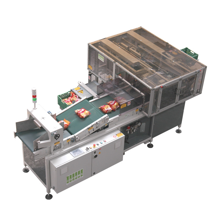 A máquina CFC-115 é ideal para caixas de papelão, ifco ou outro, e para pacotes de rede, sacos, etc. Enchimento de alta velocidade adequado para introduzir embalagens em caixas de supermercado.